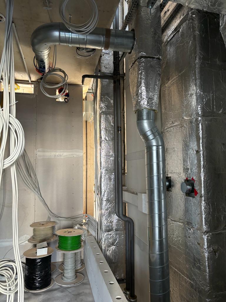 Původní potrubí bylo třeba rozřezat, naměřit nové správné rozměry a trasy. Znovu jsme rozmístili závěsy, namontované potrubí zaizolovali, namontovali expanční nádoby, nanometry, tlakoměry a termometry.