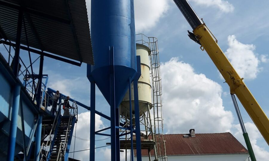 Na základě zákazníkem dodané výkresové dokumentace a materiálu proběhla výroba nových pásových dopravníků a celého sila. Lakování vyrobeného sila jsme realizovali na 3 etapy, aby byla zajištěna požadovaná kvalita. Doprava do betonárky a umístění na stavbě probíhaly za pomoci těžké jeřábní techniky. V místě betonárky následovala montáž a svařování úchytu celého sila k připravenému podstavci.